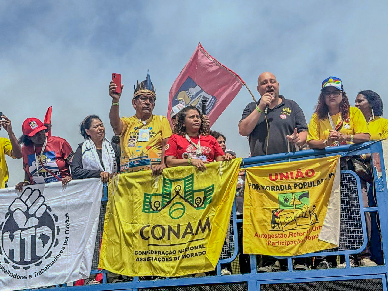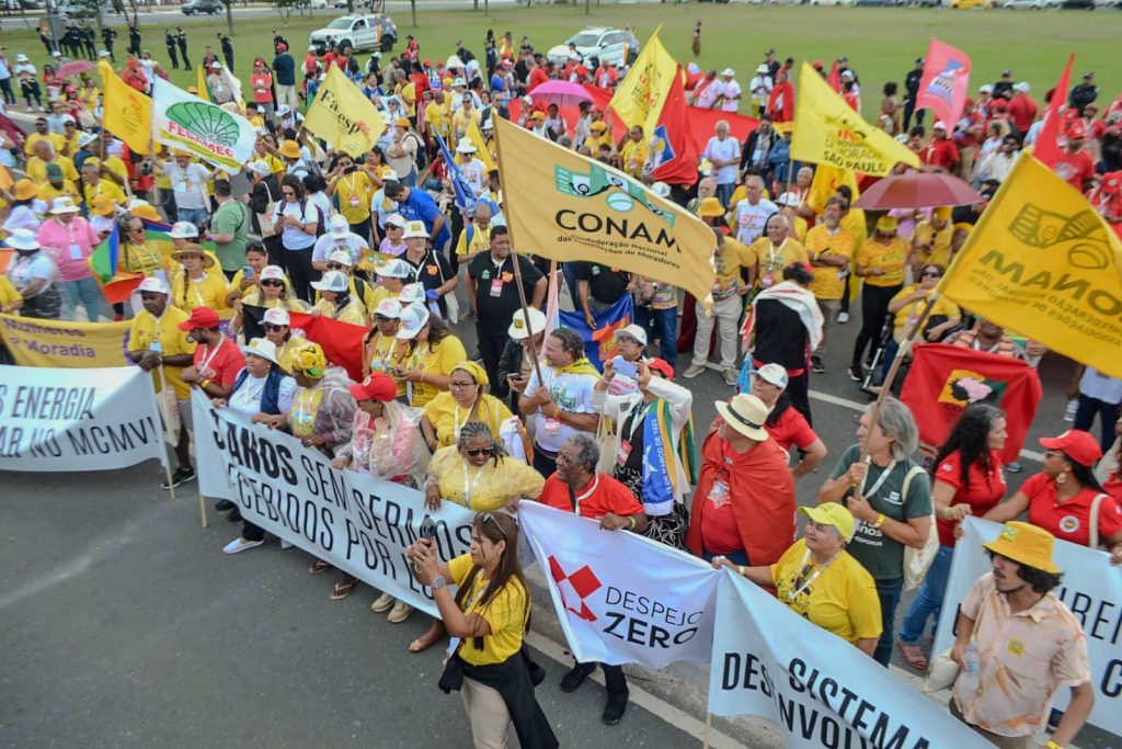 Na manhã da quinta (26), Movimentos populares urbanos realizaram uma marcha durante a 6ª Conferência Nacional das Cidades, em Brasília, para reafirmar a importância da participação popular na formulação de políticas públicas urbanas. Os manifestantes defenderam a reforma urbana, a ampliação de investimentos em moradia digna, o direito à cidade e o fortalecimento do Sistema Nacional de Desenvolvimento Urbano (SNDU).