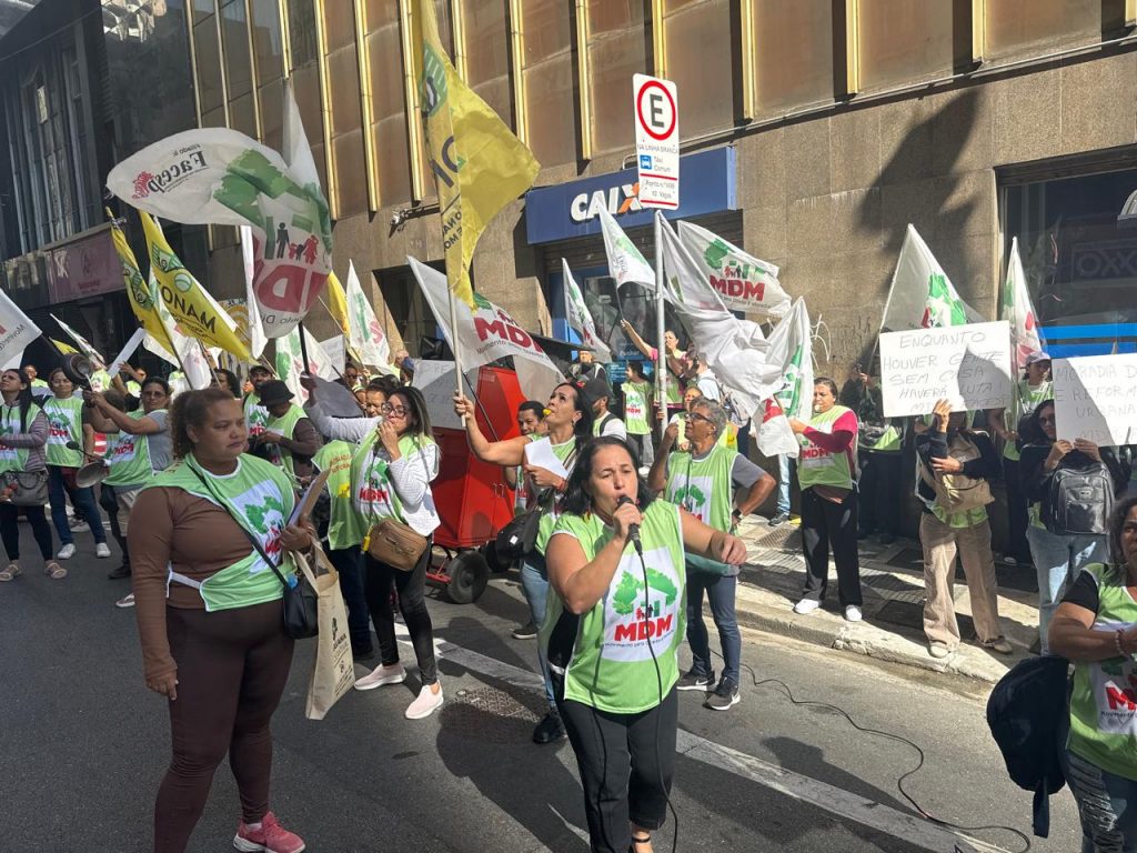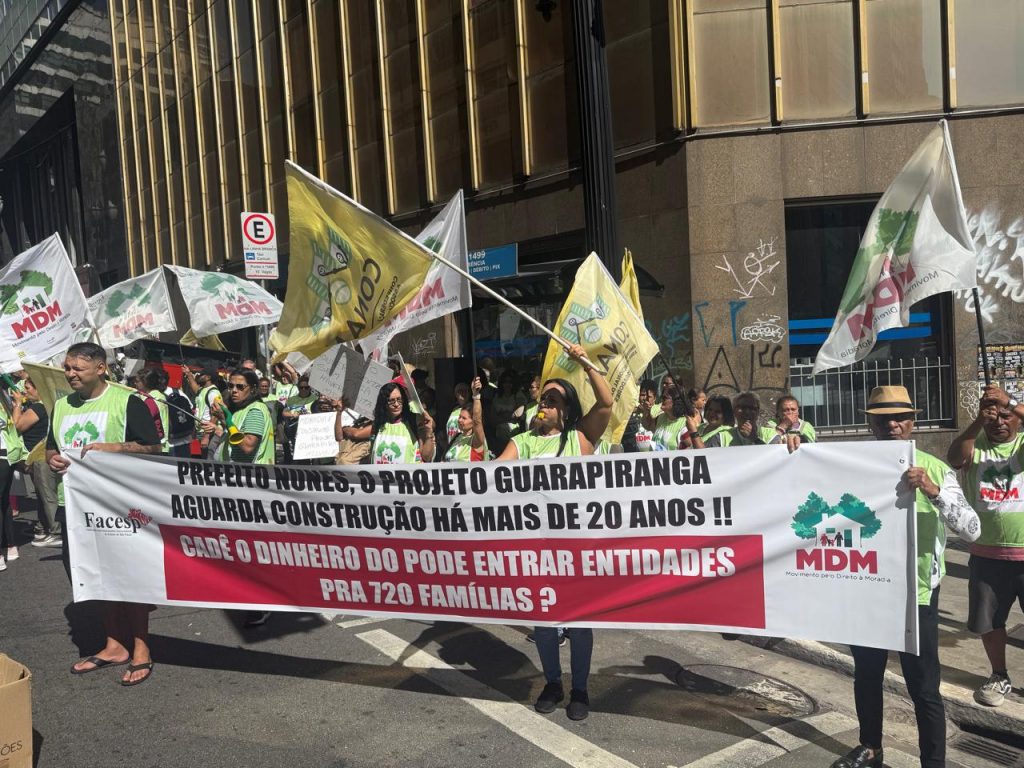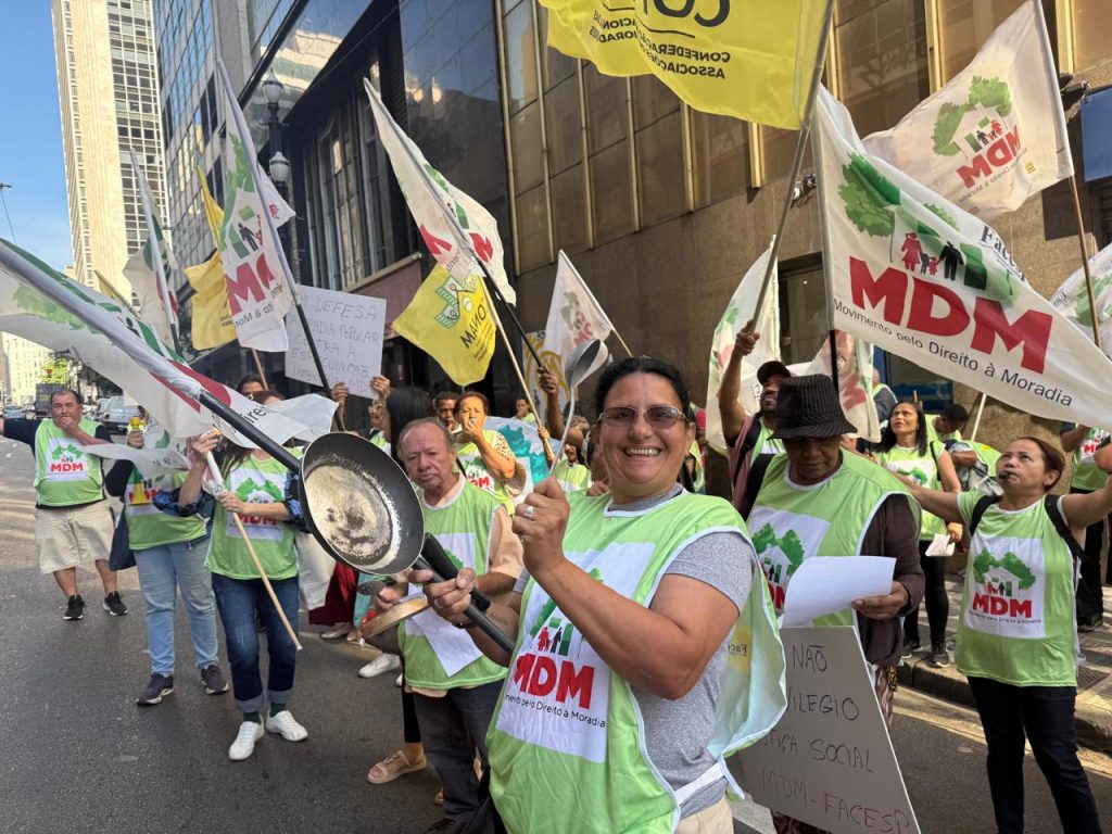 Nesta quinta (16), o MDM mobilizou os associados(as) de seus núcleos e seus projetos para um potente ato público em frente a COHAB para protestar contra uma série de demandas não atendidas pela prefeitura e seus órgãos de habitação. Em novembro/2025, o movimento já havia feito outra manifestação pra tratar das mesmas pautas e de lá pra cá nada andou não restando ao MDM colocar o povo na rua pra defender seu direito à moradia.